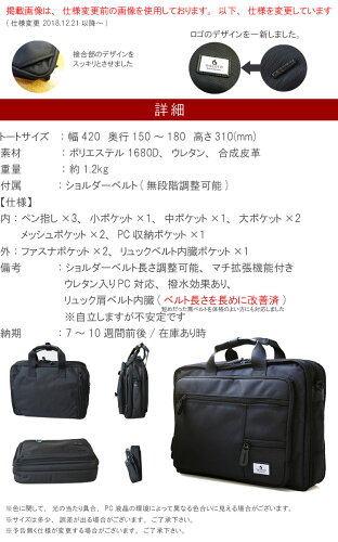 肩ベルトの長さが短かったため、体格のよい方にも対応出来るよう改善いたしました!! 就職活動シーズンや社会人に向けて応援キャンペーン中!価格に対して品質などコスパの高いメンズビジネスバッグを数量限定で特価にて販売中!無くなり次第終了とさせて頂きます! 雨にも強く、リュック、ショルダーにも使える多機能なビジネスバッグです!使い勝手がよくウレタン入りのパソコン対応バッグです 3WAYパソコンバッグ、3WAYビジネスバッグです。