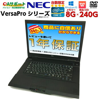 【エントリーでポイント10倍!(12月スーパーSALE限定)】中古パソコン 中古ノートパソコン Windows10 NEC VersaProシリーズ 新品SSD 台数限定 第三世代 Corei5 新品キーボード交換済 HDMI USB3.0 Office付 中古動作良好品【当店販売台数No.1】【あす楽対応】